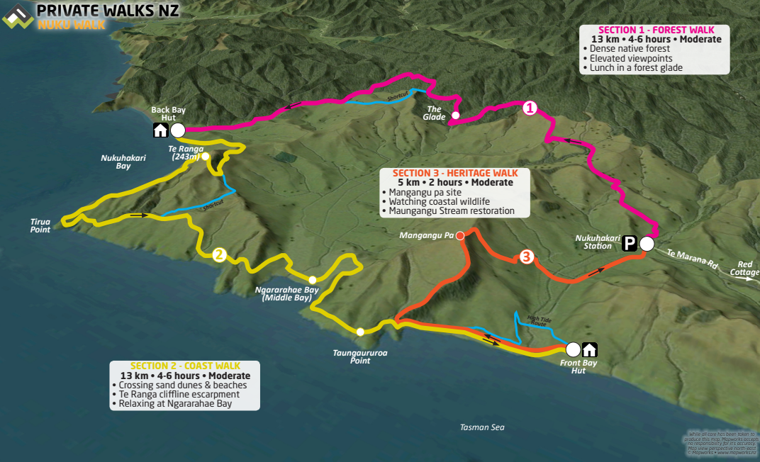 The official walk map is available to download via the Great Hikes App, under 'Private Walks’ - the link to download is below, or Search for ‘Great Walks App’ in your chosen App Store.